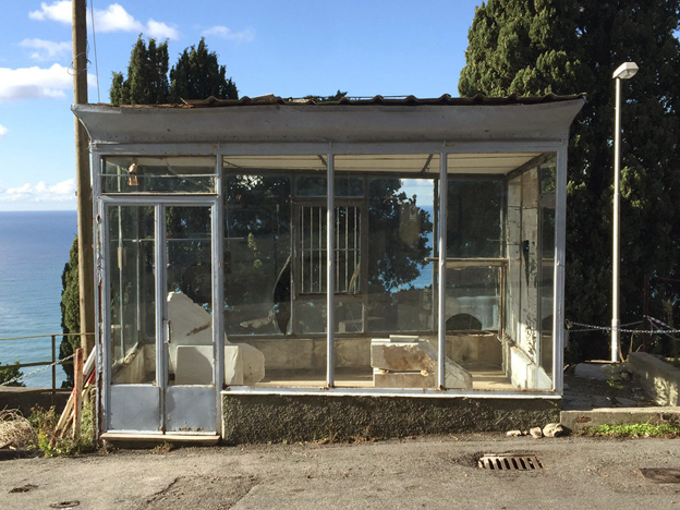 Installation view of Stored, Sant´Ilario Pavillion, Genova, 2015 4 marble works, Carrara marble, wood curated by Francesco Garutti / Vittorio Dapelo (director) >